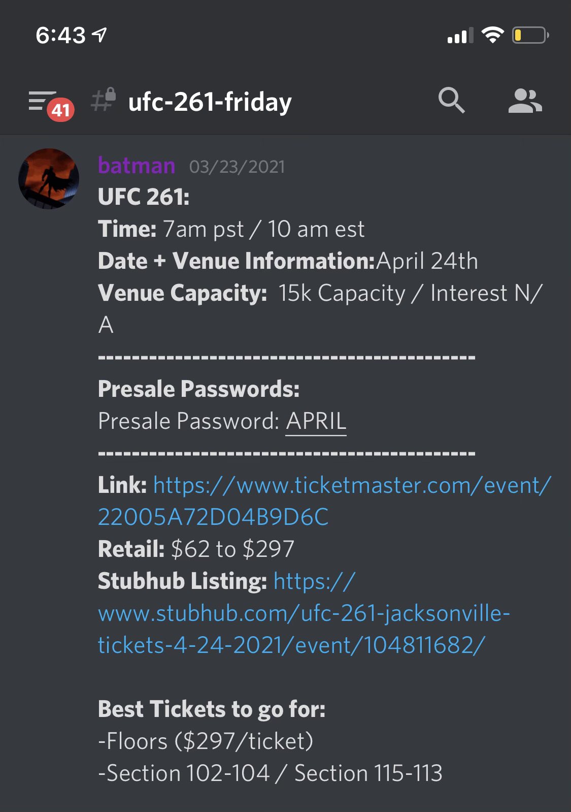 But apparently my account is not activated yet and people are saying it can take weeks to receive me code? Register for the ufc 264 presale. Only 1,076 tickets left for this apr 24 event. Ufc 261 reportedly breaks arena gate record on presale tickets alone click to subscribe to lowkick on youtube ufc 261 is set to be the first ufc event in the us with fans since february of 2020. View all shows & locations.